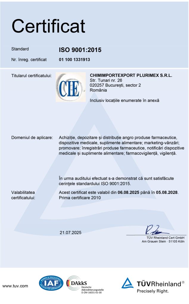 Certificat ISO 9001:2015 TUV Rheinland Dakks